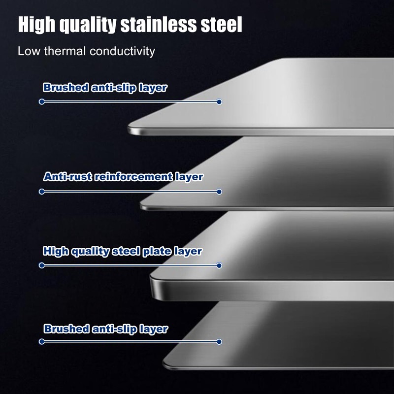 • 【Edge protection】Each edge is protected with silicone to prevent the sharp stainless steel from scratching your hands, and the edges are prohibited from directly contacting the flame, which may produce smoke.