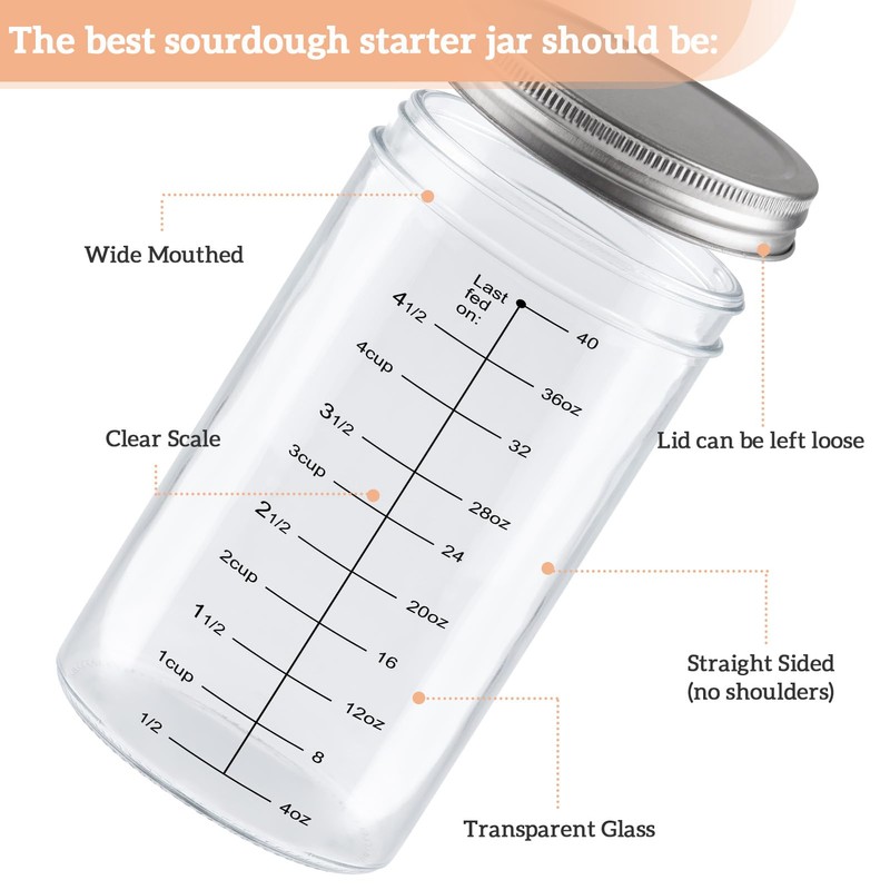 • Convenient Storage and Breathable Cover: The jar's lid can be sealed tight for storage, making it easy to store the starter in the fridge for a week or more. During the initial fermentation, we should always use a breathable cloth with a strong elastic band, allowing good airflow in and out of your jar. This ensures that your starter remains healthy and active.
