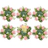 tyoungg 6 PCs Artificial Pink Rose Eucalyptus Pillar Candle Rings Wreath Weddding Banquet Reception Table Centerpiece Spring Home Decor (6, Pink)