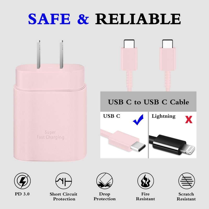 Type C Charger, 2-Pack 25W Type C Super Fast Charging Block with 6ft USB C Charger Cable Compatible with Galaxy S23 Ultra/S23+/S22/S21/S20/Phone 16/16 Plus/16 Pro Max/15/15 Pro Max/15 Plus-Pink