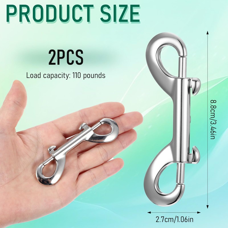 - Compact Size: Each double ended snap measures 3.46 x 1.06 x 0.35 inches, with a net weight of 1.17 oz. The package includes two pieces, conveniently packed in an opp bag