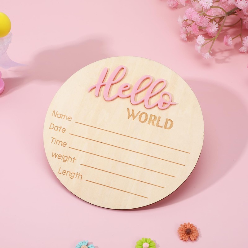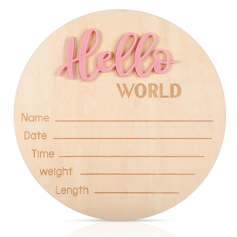 Tyqour Baby Announcement Sign 5.91 Inch Hello World Newborn Sign Welcome Baby Name Sign Newborn Announcement Sign Birth Announcement Sign For Hospital Photo Props Baby Shower Nursery(Pink)