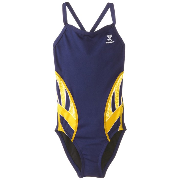 TYR SPORT Girl's Phoenix Splice Diamondfit Swimsuit, Navy/Gold, Size 24