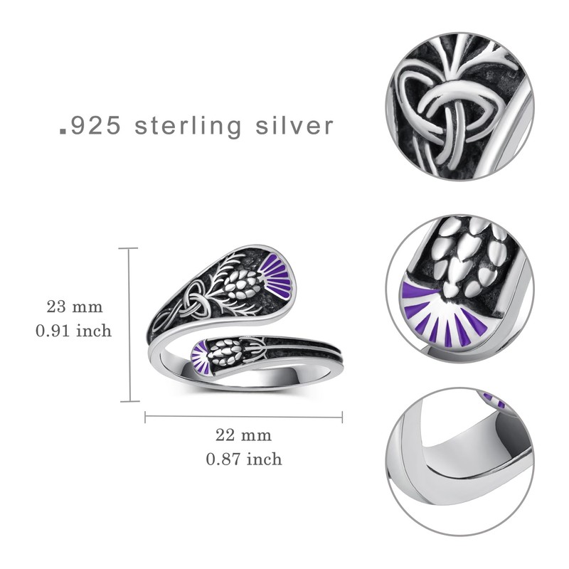 TYSO Scottish Thistle Jewelry 925 Sterling Silver Scottish Thistle Spoon Ring Scotland Celtic Knot Rings Jewelry Gifts for Women, Sterling Silver, No Gemstone