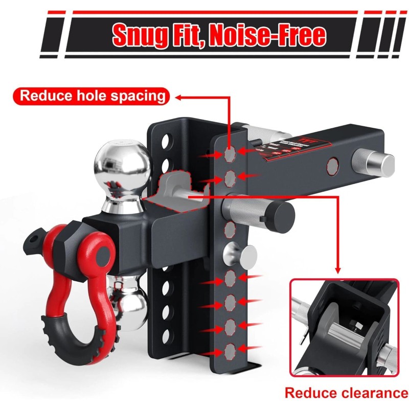 • Adjustable Designl: With precise and rapid 4-inch lowering and raising capabilities, the trailer hitch meets diverse height requirements, making the towing process more flexible and convenient