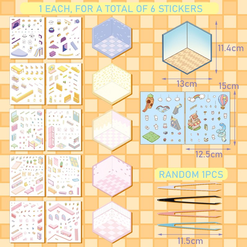 - 【3D House Sticker Set】Our 3D sticker scenes have 6 themes, Rabbit Amusement Park, Lamb Cute House, Piggy Restaurant, Rat Bedroom, Bear Dessert Shop, Devil Cat Fun Park, you have the freedom to rearrange and customize the scene according to your imagination and style.