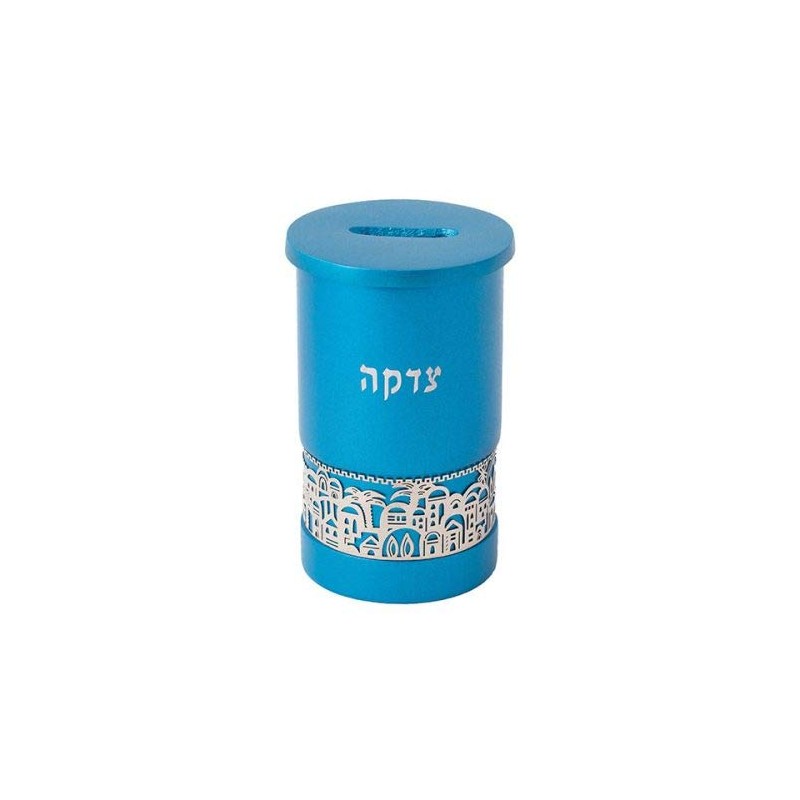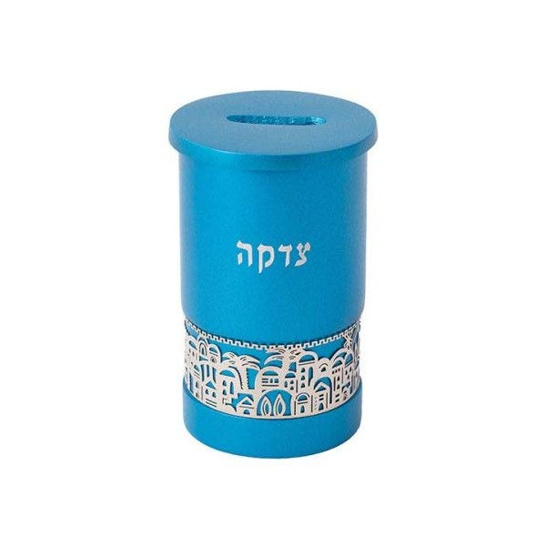 Tzedakak Box with Jerusalem Cutout - Turquoise