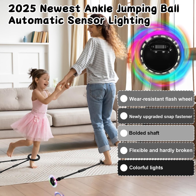 - 【2025 New Upgraded Flashing Ankle Jump Ball】: This HD LED display jump ball has 4 functions: counting, timing, kilometers and calorie counting. Simply turn on the button and the roller automatically lights up and creates a brilliant light effect that makes every jump a little visual feast!