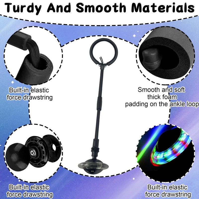 - 【Safety First】: Our jumping ball is made of high quality material, no smell, safe to use. The ankle rings are thickly padded for comfort and protection of your child's ankles. The bouncy ball has a built-in elastic drawstring, which is flexible and not easy to break. Effectively protects your child's ankles from bumps.