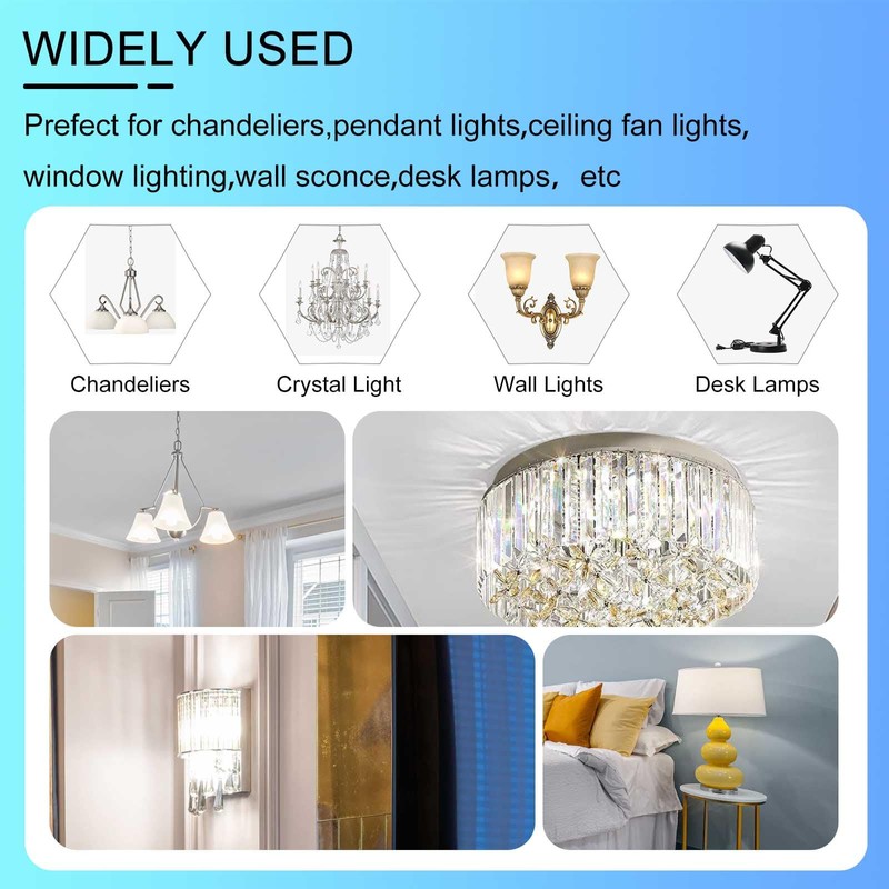 - Uses a standard E14 Edison screwdriver base and is suitable for chandeliers, lamps, wall lights and most E14 lights.