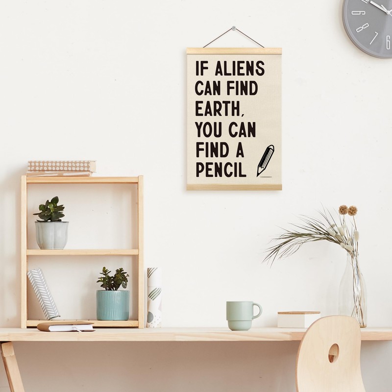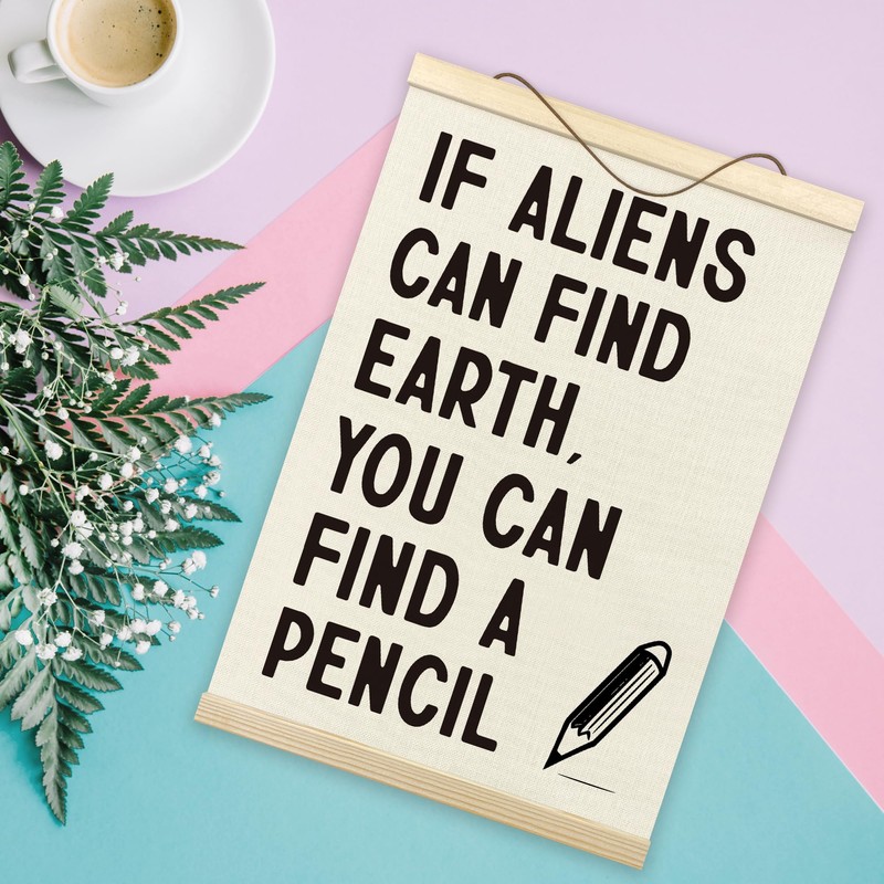 Tzhim If Aliens Can Find Earth You Can Find a Pencil Poster Hanger Frame, Funny Classroom Wall Hanging Decor for Middle High School, Black and White Classroom Wall Art Prints with Wood Frames, 12x16in