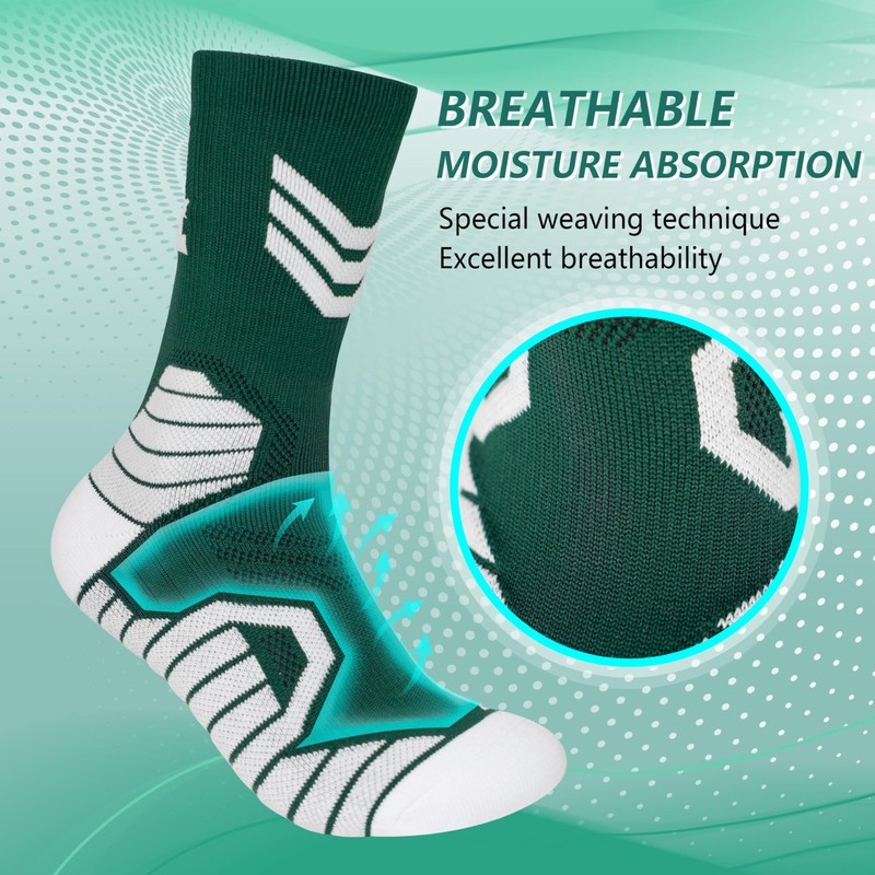 - 【High-Performance Basketball Socks】Our men's socks are designed with carefully placed pressure anti-slip cushioning zones, dense zones, ventilation zones, and pressure relief zones to ensure a more comfortable wearing experience. The moisture-wicking and breathable fabric, along with extra shock absorption, allow you to move more freely during sports.