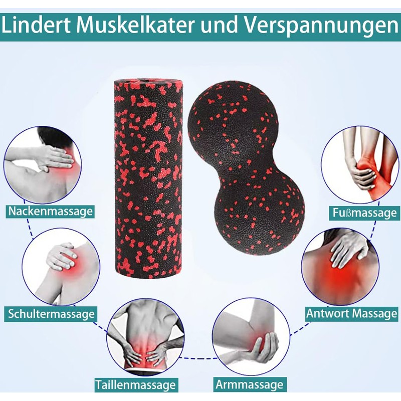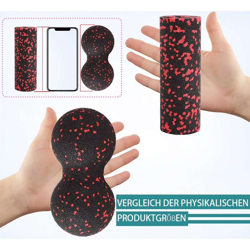 TzzXzz Fascia Ball and Fascia Roller Mini Set, 2-Piece Small Massage Ball Set, Fascia Tool for Effective Fascia & Trigger Point Treatment for Spine, Acupressure Plantar Fasciitis (Red)