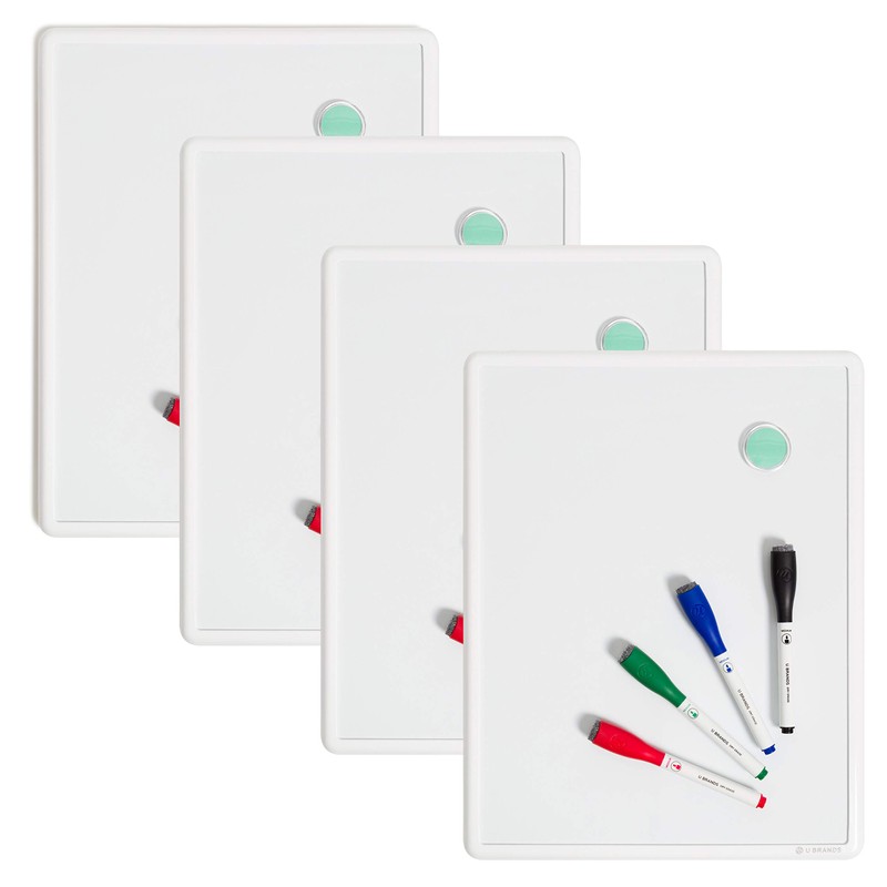 U Brands Contempo Magnetic 11” x 14” Dry Erase Board Bundle, 4 Boards + 16 Markers + 4 Magnets