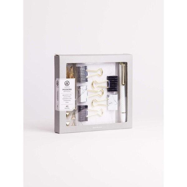 - Includes 1 Monterey ballpoint pen, 50 page notepad, 6 gold push pins, 5 modern binder clips and 30 gold paper clips