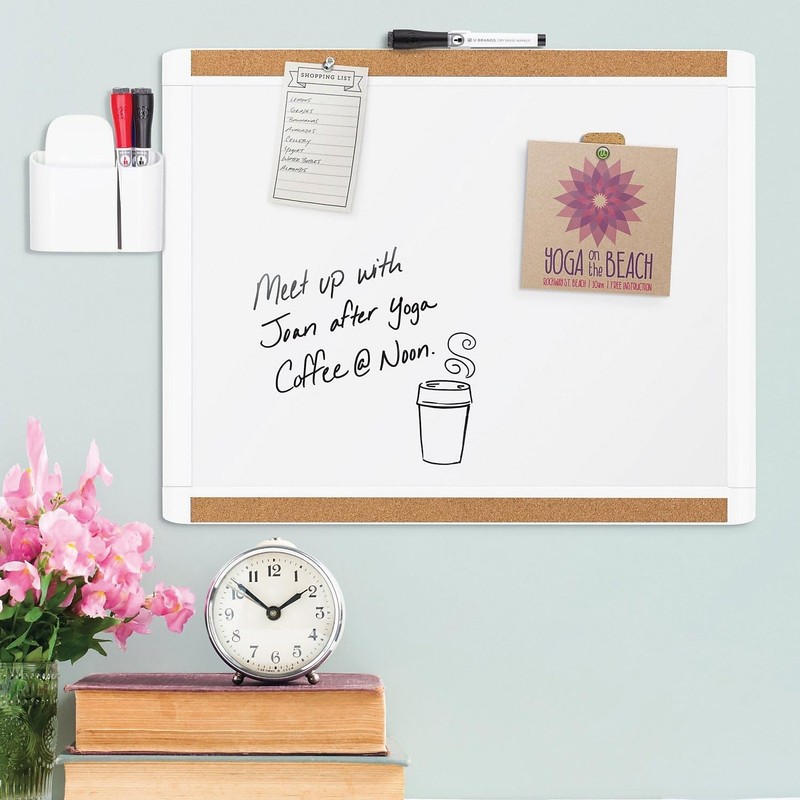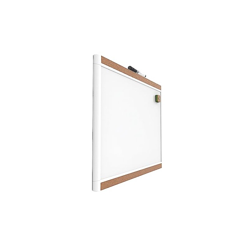 U Brands PinIt Combination Dry Erase Board with White Frame, Office Supplies, Includes Marker and Magnet, 16” x 20”