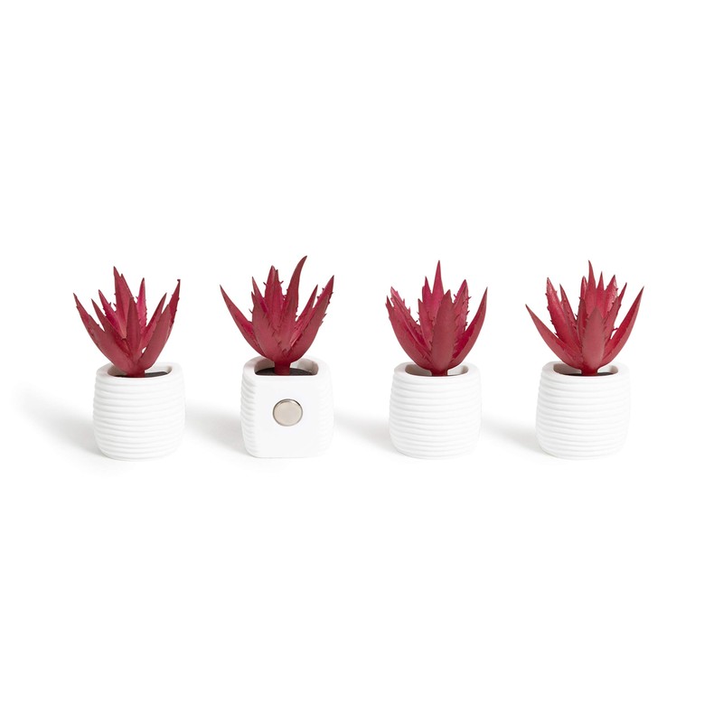- This 12-piece set comes with 12 succulent magnets in assorted styles place in white minature pots