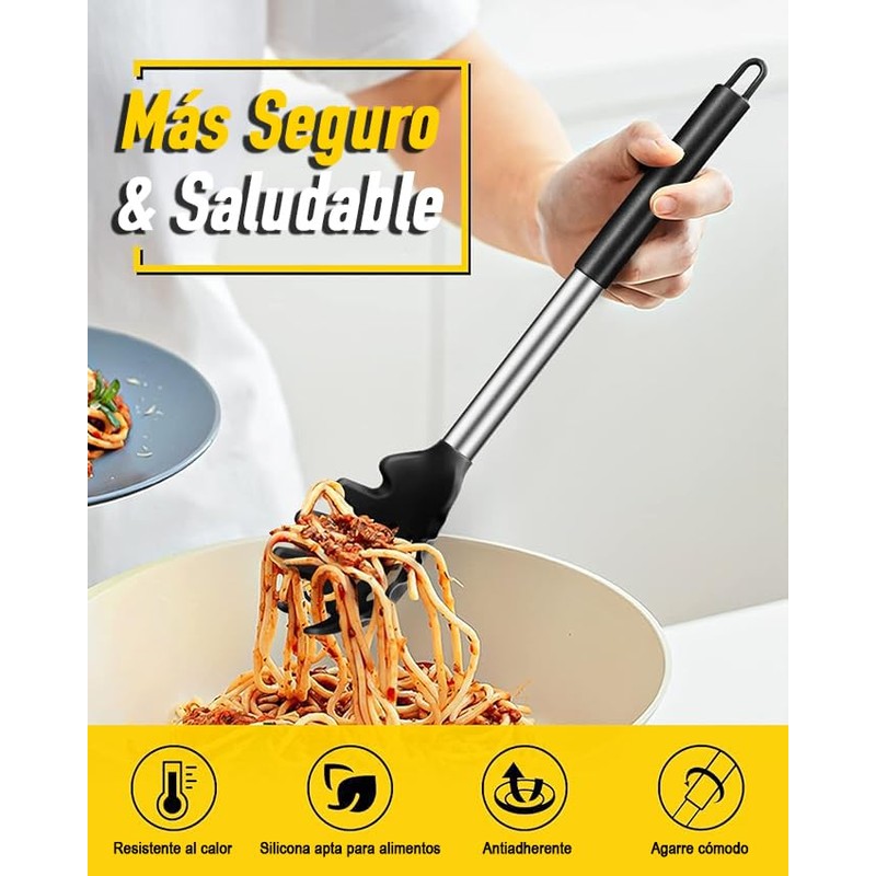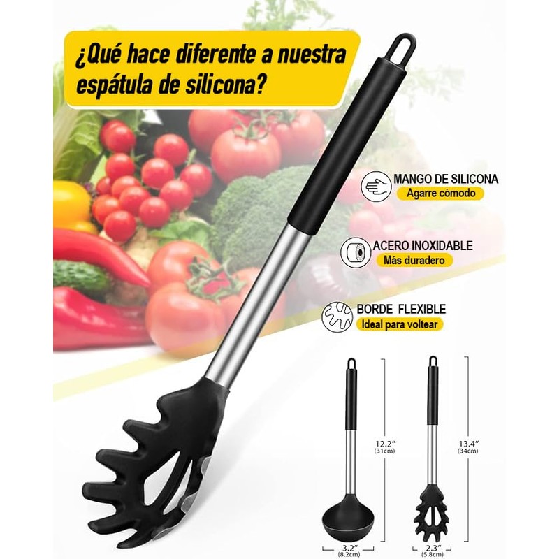 - SEGUROS Y RESISTENTES: Nuestros utensilios de cocina de silicona están hechos de silicona de grado alimenticio, garantizando que son libres de BPA. Resistentes a altas temperaturas, no se derriten ni deforman, protegiendo tus ollas.