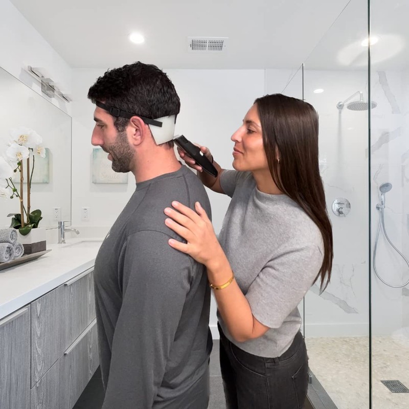 - NON-SLIP & ADJUSTABLE C We made our hair trimmer template using only grade-A silicone thats non-slip and stays securely in place. It adheres tightly to the so you can easily use it on high and low necklines to get a clean edge with no need for a mirror