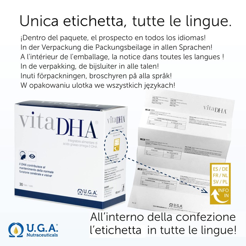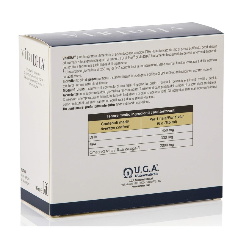 U.G.A. Nutraceuticals vita DHA Nahrungsergänzungsmittel mit Omega 3 Fettsäure, 195 ml