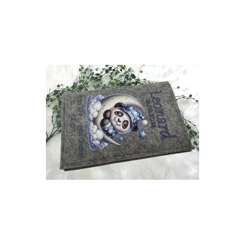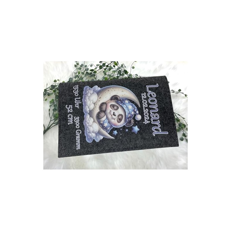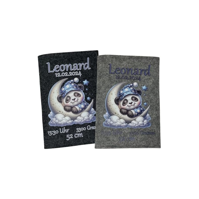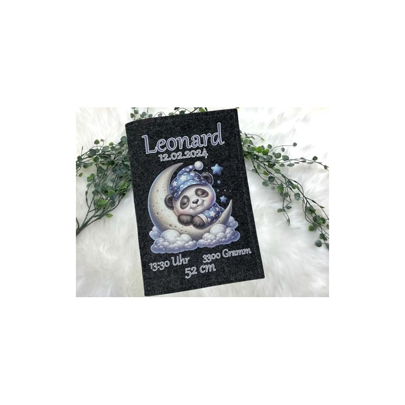U Heft Hülle und Impfpass aus Filz - Personalisiert mit Namen - Untersuchungsheft Schutzhülle - Babygeschenke zur Geburt - Kinderuntersuchungsheft Mädchen und Junge - Panda Mond