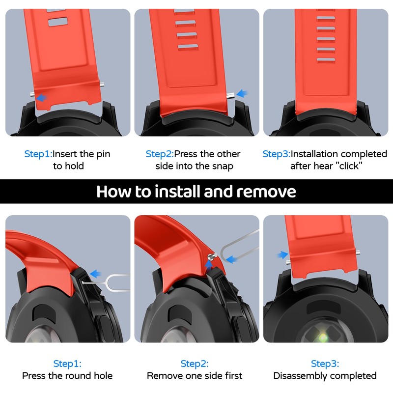 - Quick replacement strap, easy to install and remove. Removal tool included.