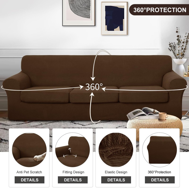U-NICE HOME 4 Pieces Oversized Stretch Couch Cover Sofa Cover Washable Slipcover with Individual Seat Cushion for 3 Cushion Couch Sofa Pet Friendly(Oversized Sofa, Brown)