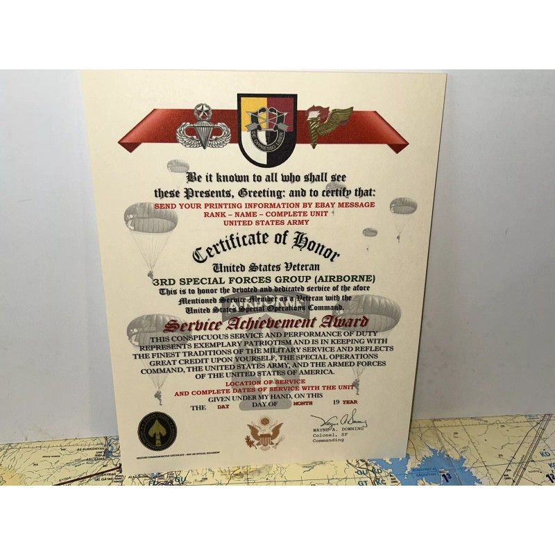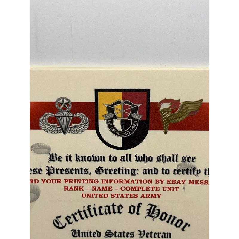 ARMY - S.F. SPECIAL OPERATIONDS / COMMEMORATIVE CERTIFICATE
