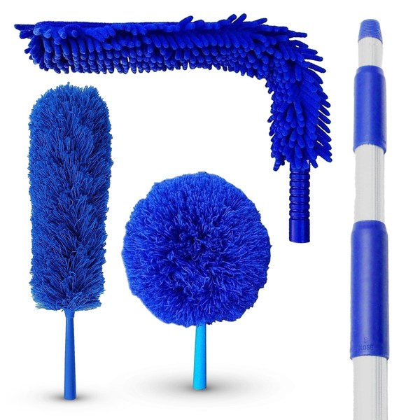 - BENDABLE DUSTER HEADS – This blue microfiber duster head is bendable, making it one of the most versatile dusting tools available. You’ll be able to reach around corners and clean irregularly shaped objects. Dust off kitchen appliances, window blinds, picture frames, television screens, and the inside of your car. With the extendable pole, you can reach dust and grime