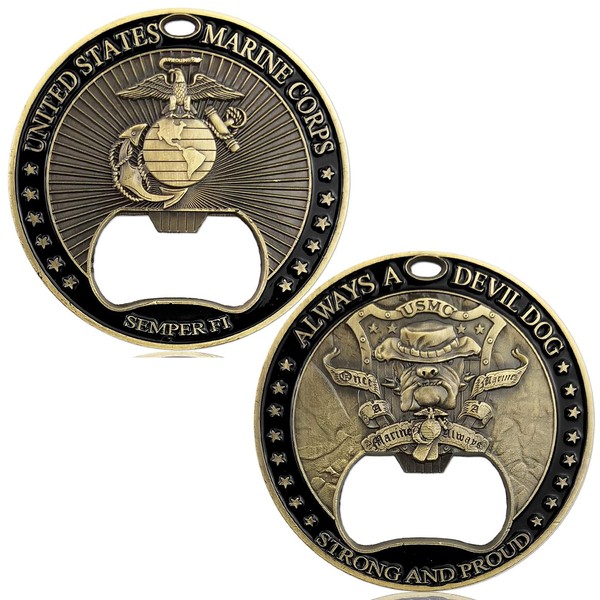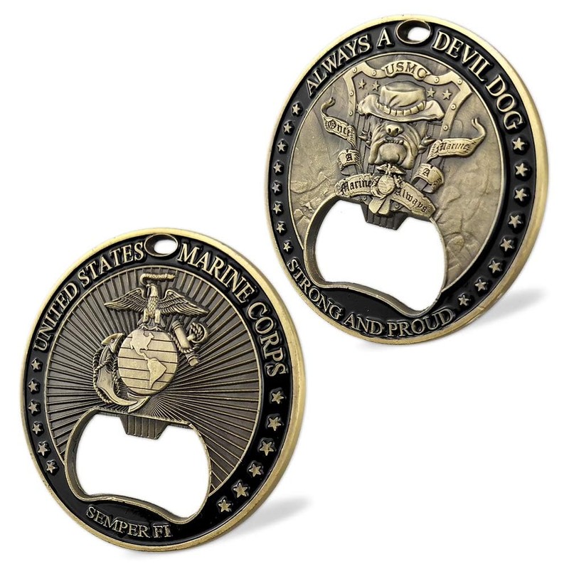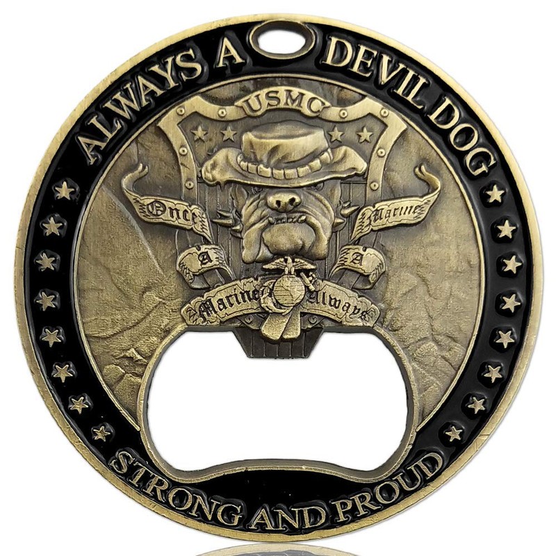 U.S.Marine Corps Devil Dog Veteran Military Challenge Coin Army Key Chain USMC Bottle Opener
