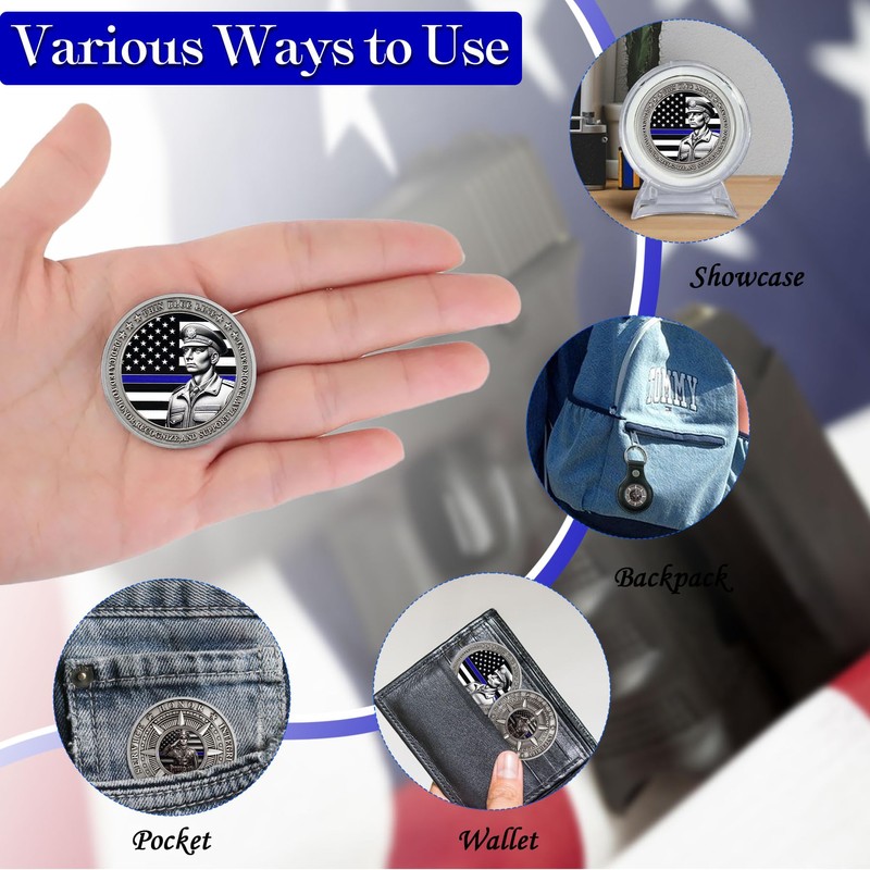 - 𝗣𝗼𝗿𝘁𝗮𝗯𝗹𝗲 𝗮𝗻𝗱 𝗗𝗶𝘀𝗽𝗹𝗮𝘆-𝗥𝗲𝗮𝗱𝘆: This compact police coin is easy to carry or display, fitting conveniently into pockets, wallets, or on desks. Whether you’re gifting it as a "Thank You for Your Service" coin or adding it to a collection, its size makes it wonderful for everyday carry or as a memorable police officers present.