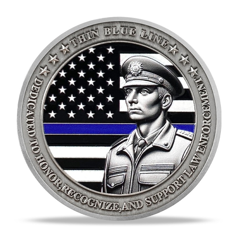 U.S. Police Challenge Coin Law Enforcement Coin Thin Blue Line Saluting Officer Thanks for Your Service Police Officer Gifts for Law Enforcement Policemen Military God Bless The Police