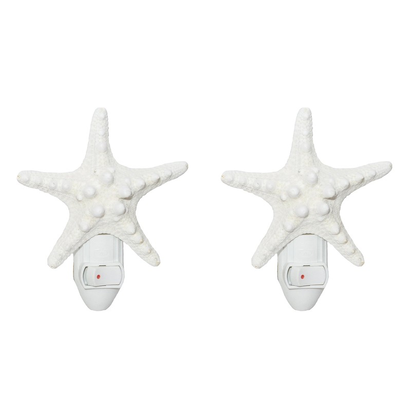 U.S. Shell, Inc. 05149 Seashell Night Light Set of 2 (White Armoured Starfish)