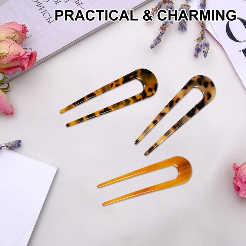 U-shaped hair pins, French style hair pin stick, U-shaped hair clips, hairpin fork sticks, hairstyle chignon pins, U-shaped hair pins, hair clip turtle shell, 3 pieces