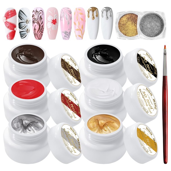 - New-Upgraded Formula:Sculpture painting Nail Gel kit with the new formula to make higher pigment, easier self-leveling and long- lasting. Also, it achieves ultra-precise application without leaking out of nail beds. Every stroke is unbelievably fluid for a defined finish, also beginners can draw a perfect look.