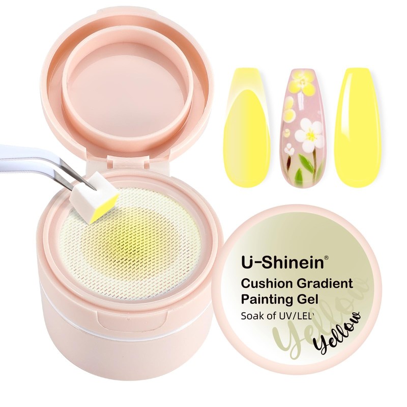 U-Shinein Cushion Gradient Painting Gel, Ombre Nails Aura Nails Full Coverage Precise Control of Each Dip Matte Effect Non-Wip Long Lasting French Manicure Soak Off UV LED DIY Nail Art,Yellow