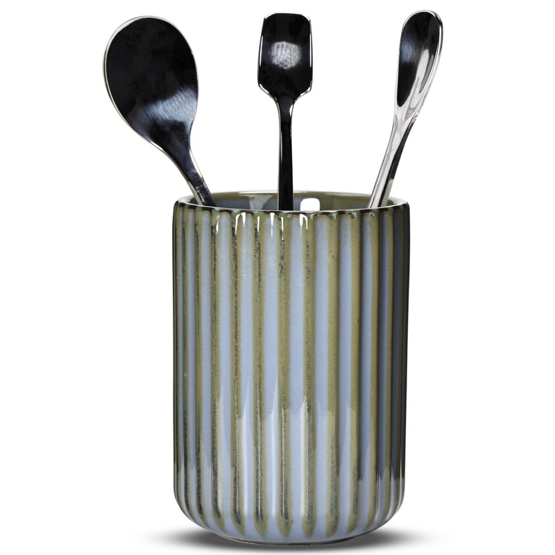 U-TIMES Ceramic Spoon Holder for Coffee Bar, Upright Tea Spoon Holder Cup, Coffee Stirrers Straws Stir Stick Holder, Light Green Fluted Surface