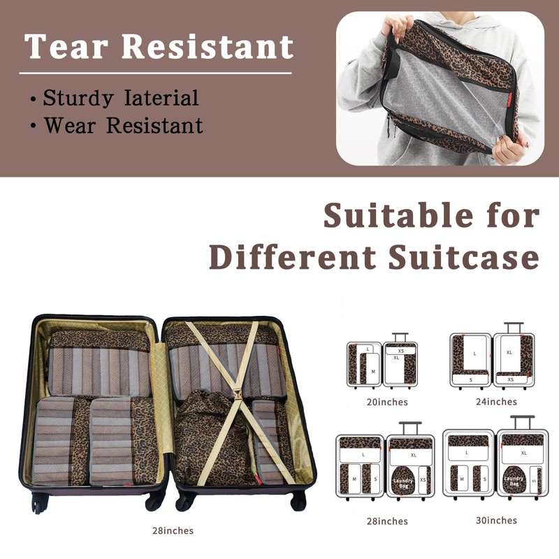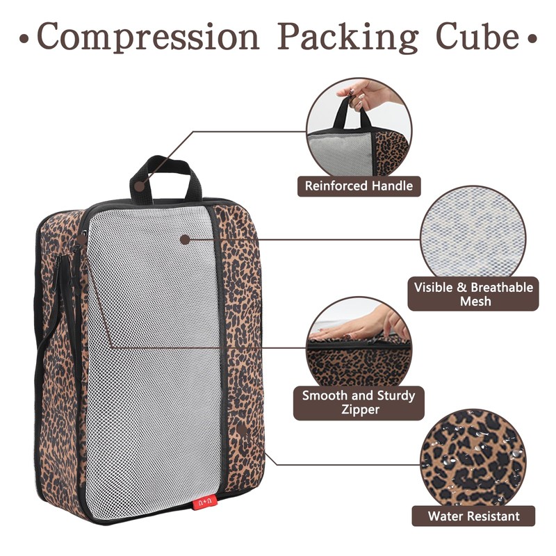U+U 6 Set Compression Packing Cubes - Ultralight Travel Organizers with Laundry Bag, Space-Saving Suitcase Organizer, Expandable Packing Cubes for Travel, Business Trip and Family Vacation (Leopard)