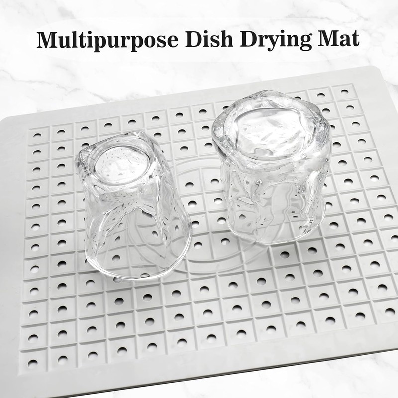 - 💧 Fast Drainage & Drying – Built-in 5mm drain holes promote airflow and water drainage, keeping the mat dry and clean while drying dishes, glasses, and utensils.