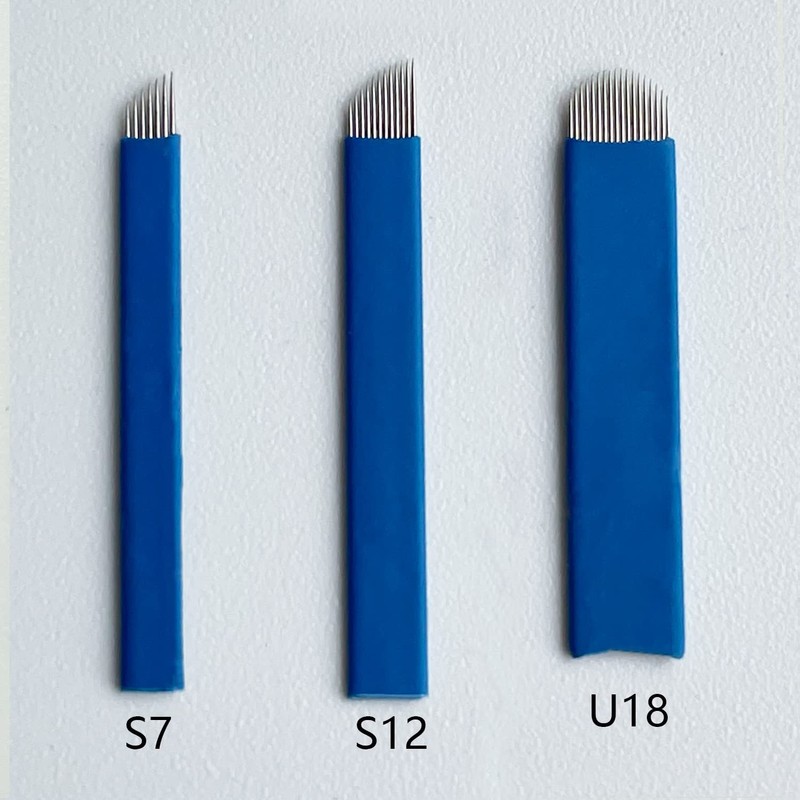 U18 30Pcs Disposable Microblading Needles with 0.20mm Diameter,18 Pins U Shape Permanent Makeup Supplies Manual Eyebrow Shading Blades - Blue 18U Pins