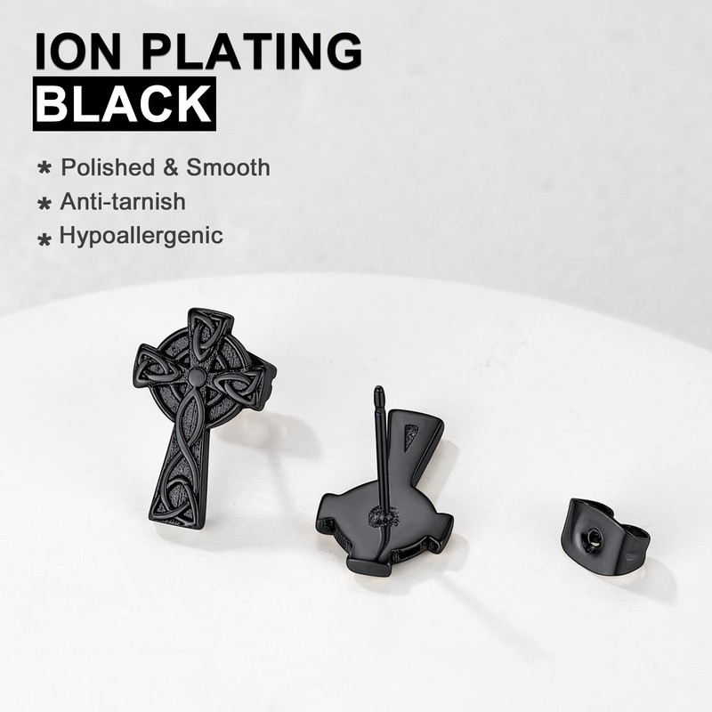 U7 Black Celtic Cross Mens Stud Earrings Viking Jewellery For Men