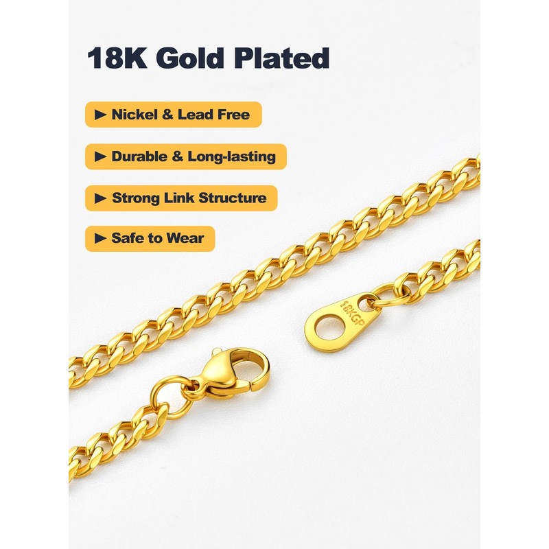 High quality and fine craftsmanship : shiny diamond-cut, 316L stainless steel/18K gold plated Cuban chain brings out a bright shine, textured look, and smooth touch feeling. It's an essential daily wear piece for men and women.