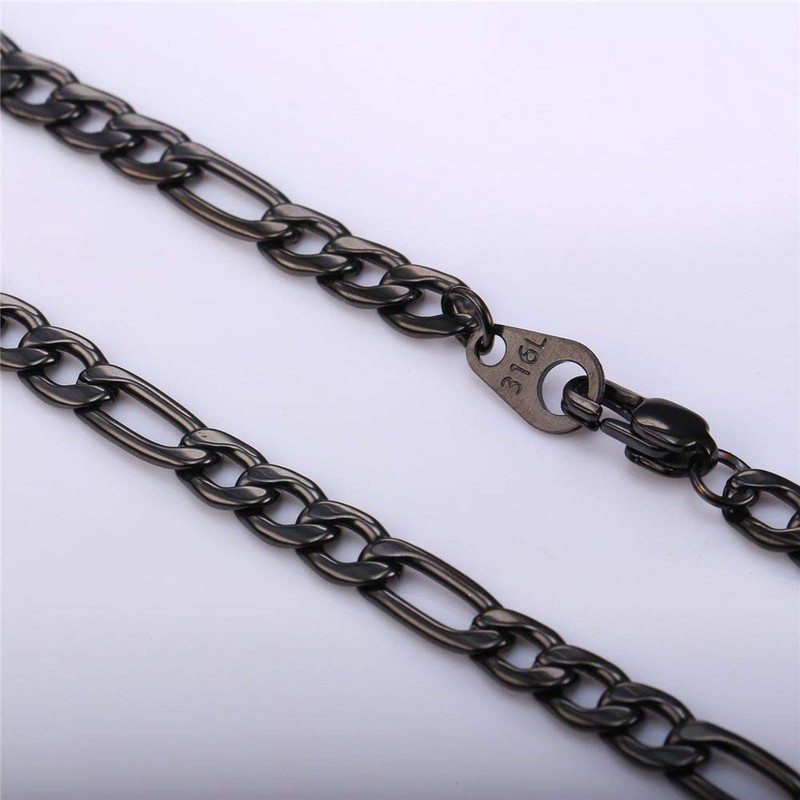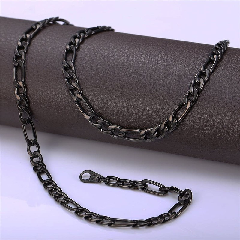 U7 Men's Chain Set 5mm Wide Ion plating Black Metal Stainless Steel Flat Link Figaro Chain Necklace Bracelet 28" 8.3"