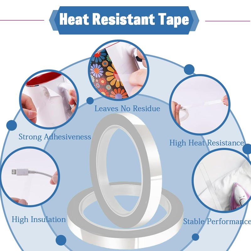 • 【Leaves No Residue】: The heat resistant tape for the heat press has good resistance and leaves no residue after peeling off. Even uneven surfaces can be easily wrapped with heat-resistant craft tape
