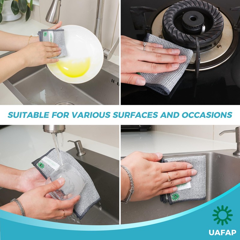 UAFAP 24 PCS Non Scratch Wire Dishcloth, Cleans Fast Without Scratching, Stands Up to Stuck-on Grime, Multi-Surface Safe, Wire Dishwashing Rag Cleaning Power for Everyday Jobs 7.87“ x 7.87”