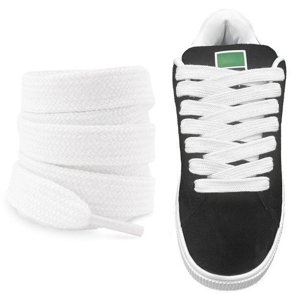 UamGlsob 2/5"(1cm) Cotton Shoe Laces for Puma Sneakers, Flat Wide Athletic Shoelaces Replacement Strings for Skate Shoes (White, 39"/100cm)