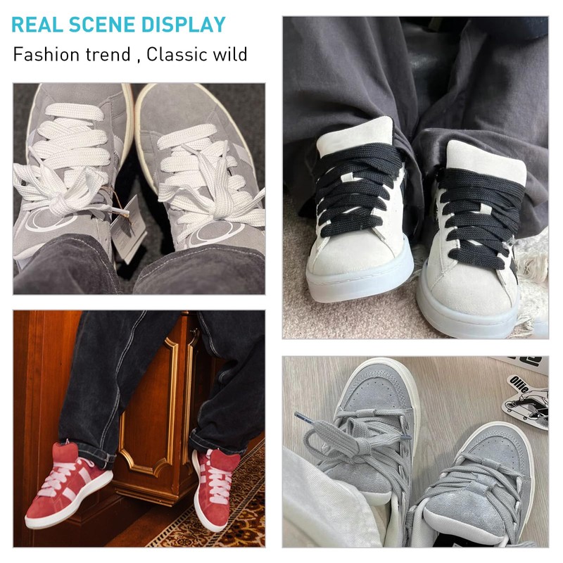 - 【Retro Personality】The chunky shoe laces enhance classic shell-toe shoes, infusing them with a retro flair that's both playful and stylish. Whether you're aiming to recreate a vintage 80's old school look or simply add a splash of personality to your sneakers, these shoelace are a splendid choice.