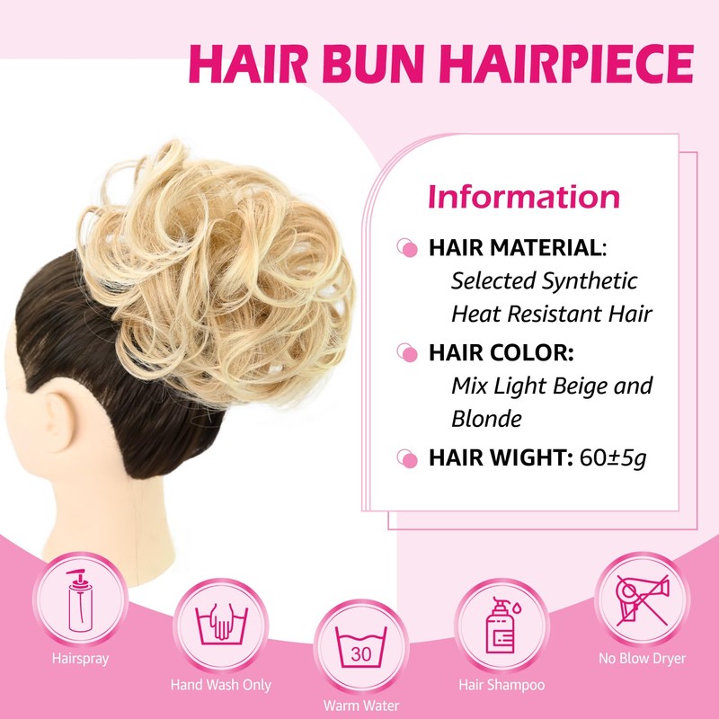 Hair Package:1 Synthetic Chignon Updo Hair Bun + 8 Bobby Pins + Rubber Band