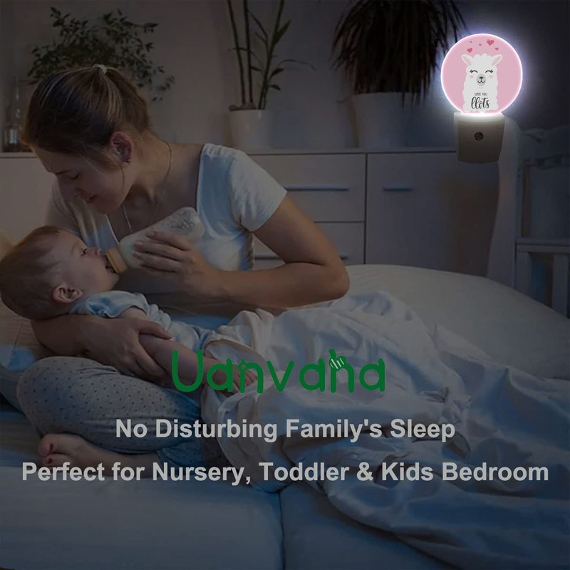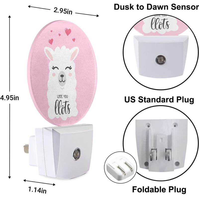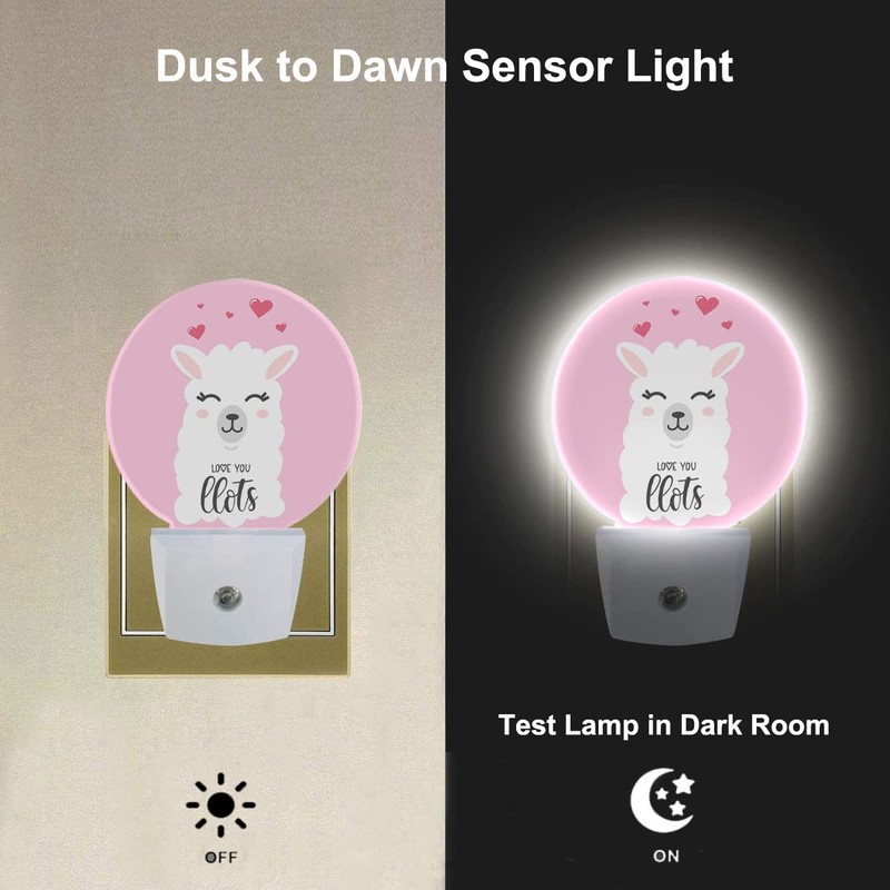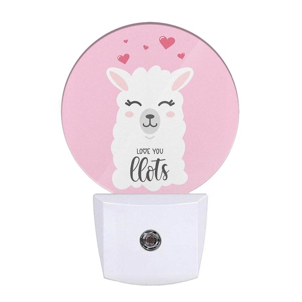 Uanvaha Llama Night Lights Plug into Wall Valentines Day Love You Llama Quote Design Night Light Dusk to Dawn Sensor LED Lamp for Bedroom Bathroom Living Room, 0.5W Sleep Friendly