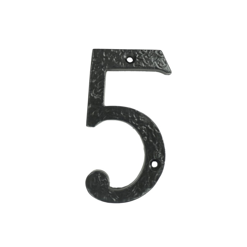 UAP House Numbers - 4 Inch Black Iron Door Numbers Screw Fix For Front Door, Rustic Address Number Screw On For Doors And Gates, Made of Solid Cast Iron (Number 5)